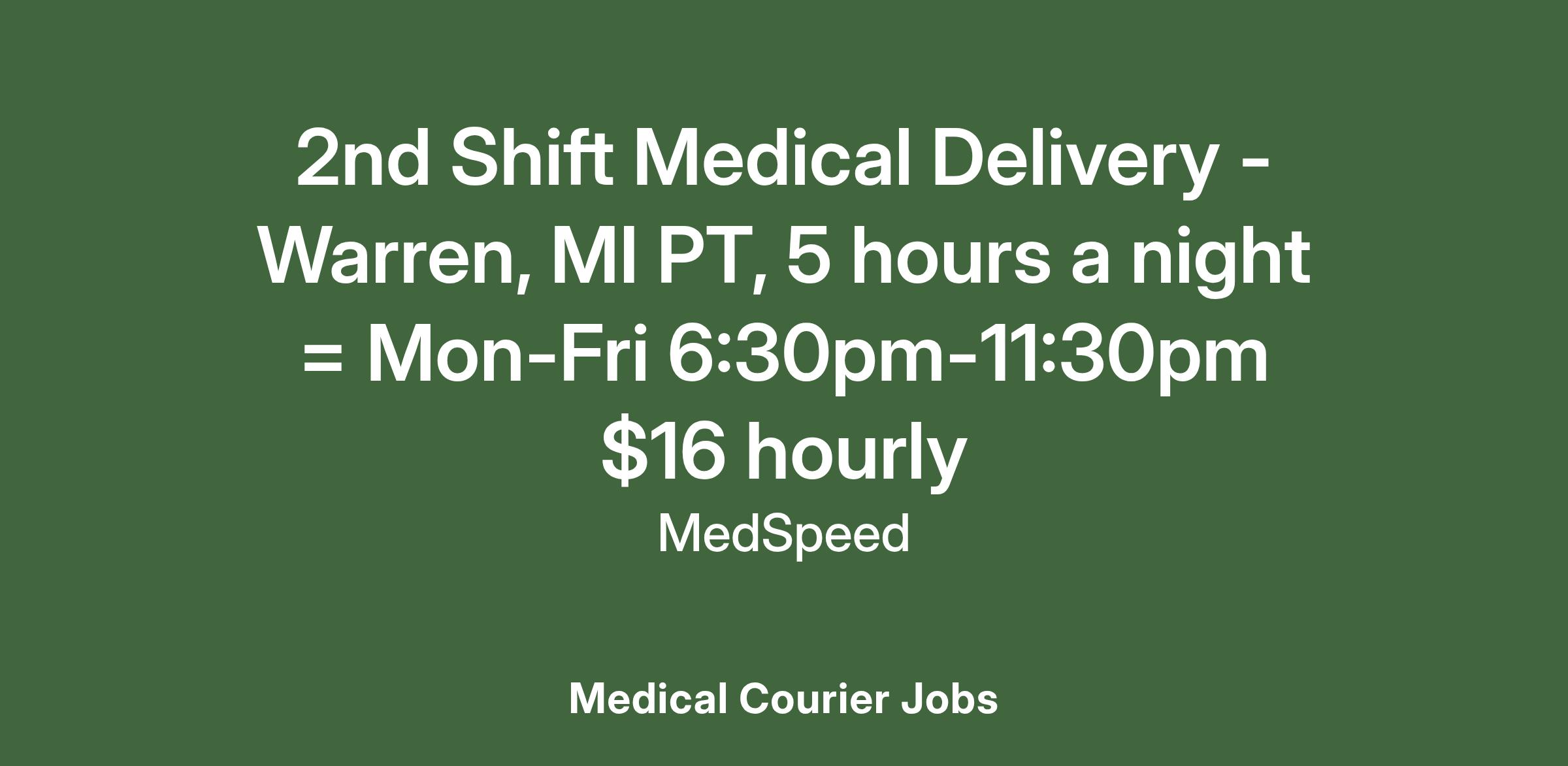 What you will be doing as a MedSpeed Medical Driver: - Most of your day will be spent in a company-owned vehicle, safely driving and transporting lab specimens, medical records, pharmaceuticals, x-rays, hospital supplies, interoffice mail and related materials