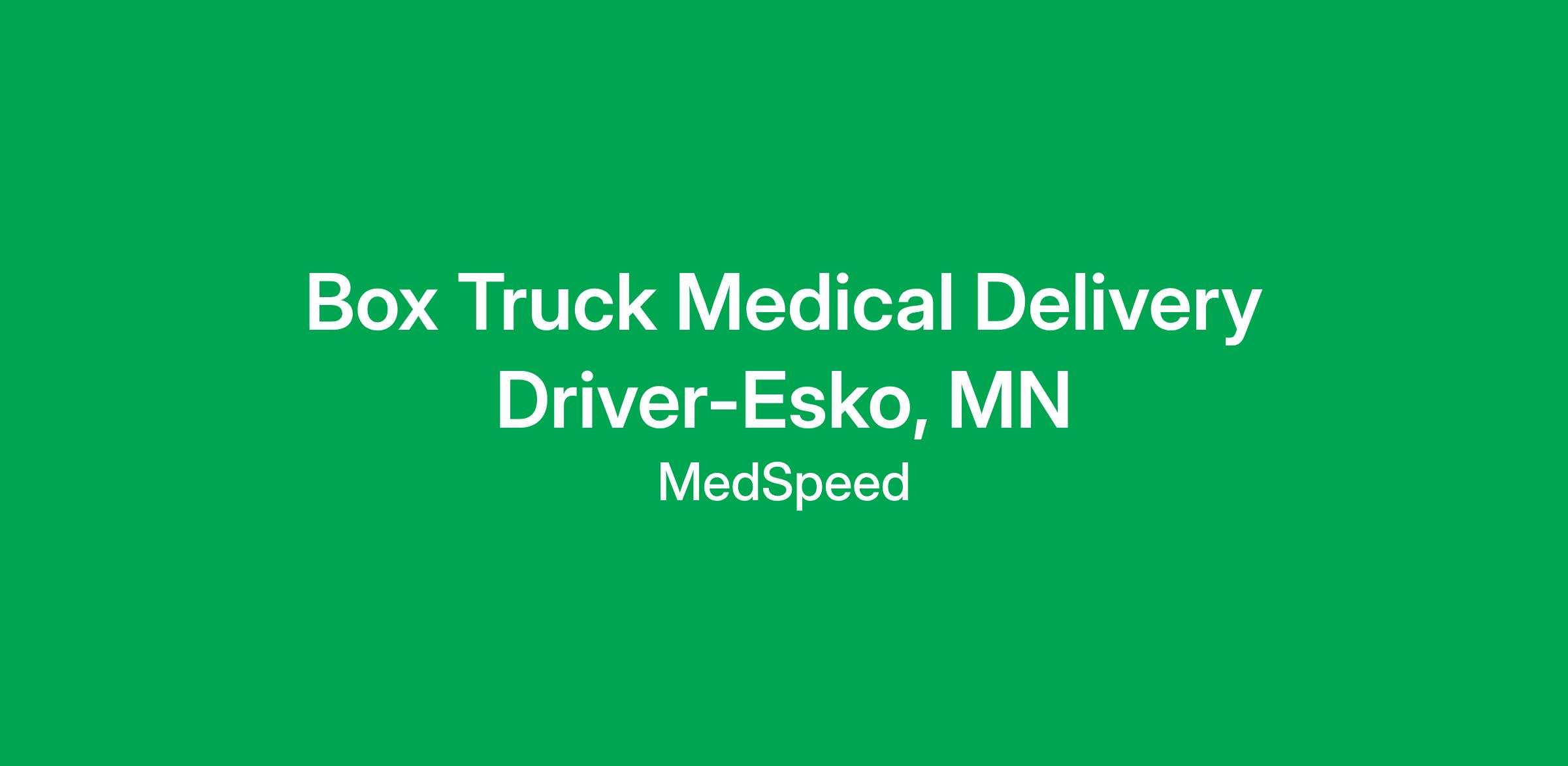 What you will be doing as a MedSpeed Box Truck Medical Driver: - Most of your day will be spent in a company-owned vehicle, safely driving and transporting lab specimens, medical records, pharmaceuticals, x-rays, hospital supplies, interoffice mail and related materials