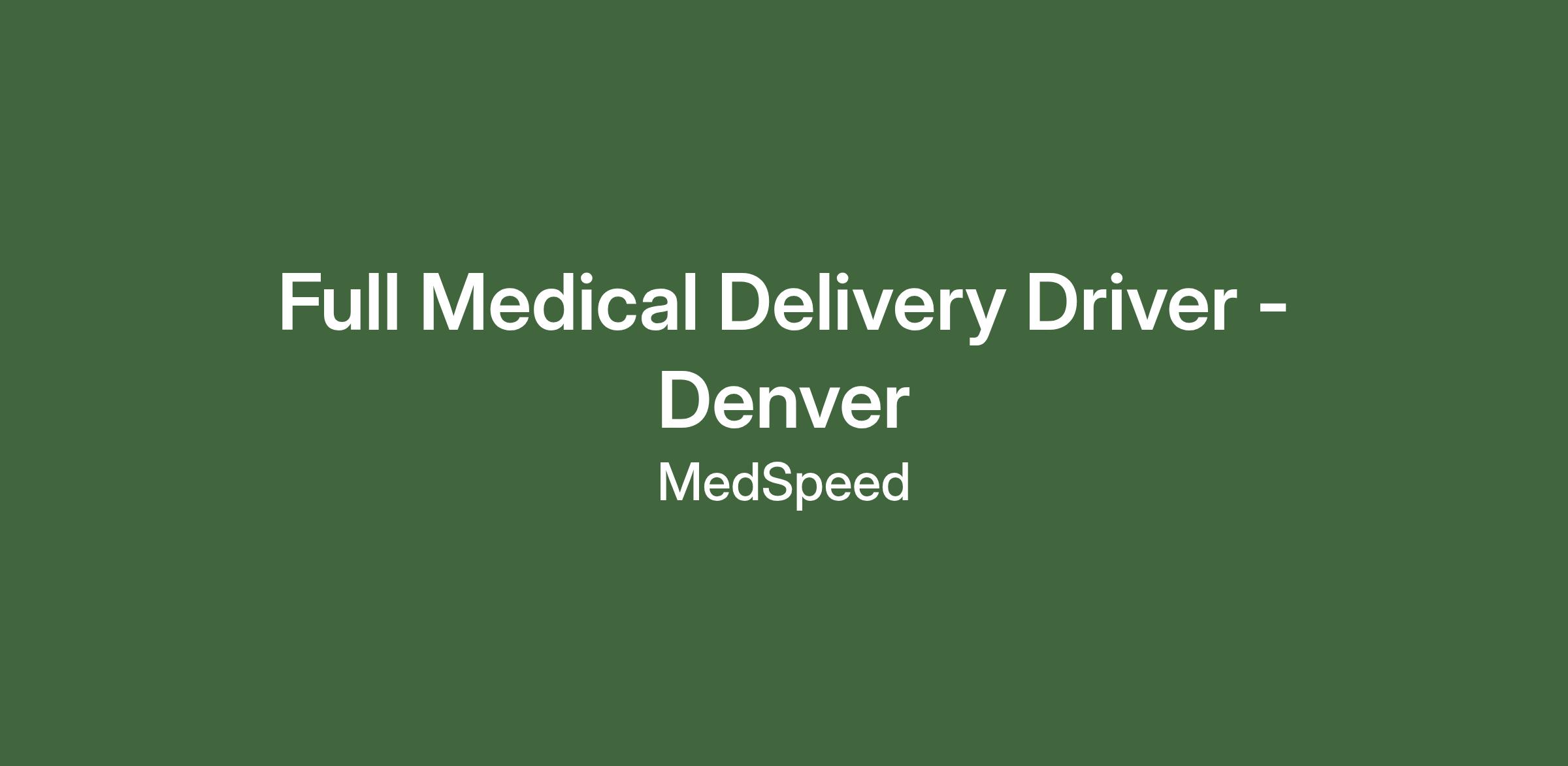 Full Medical Delivery Driver - Denver