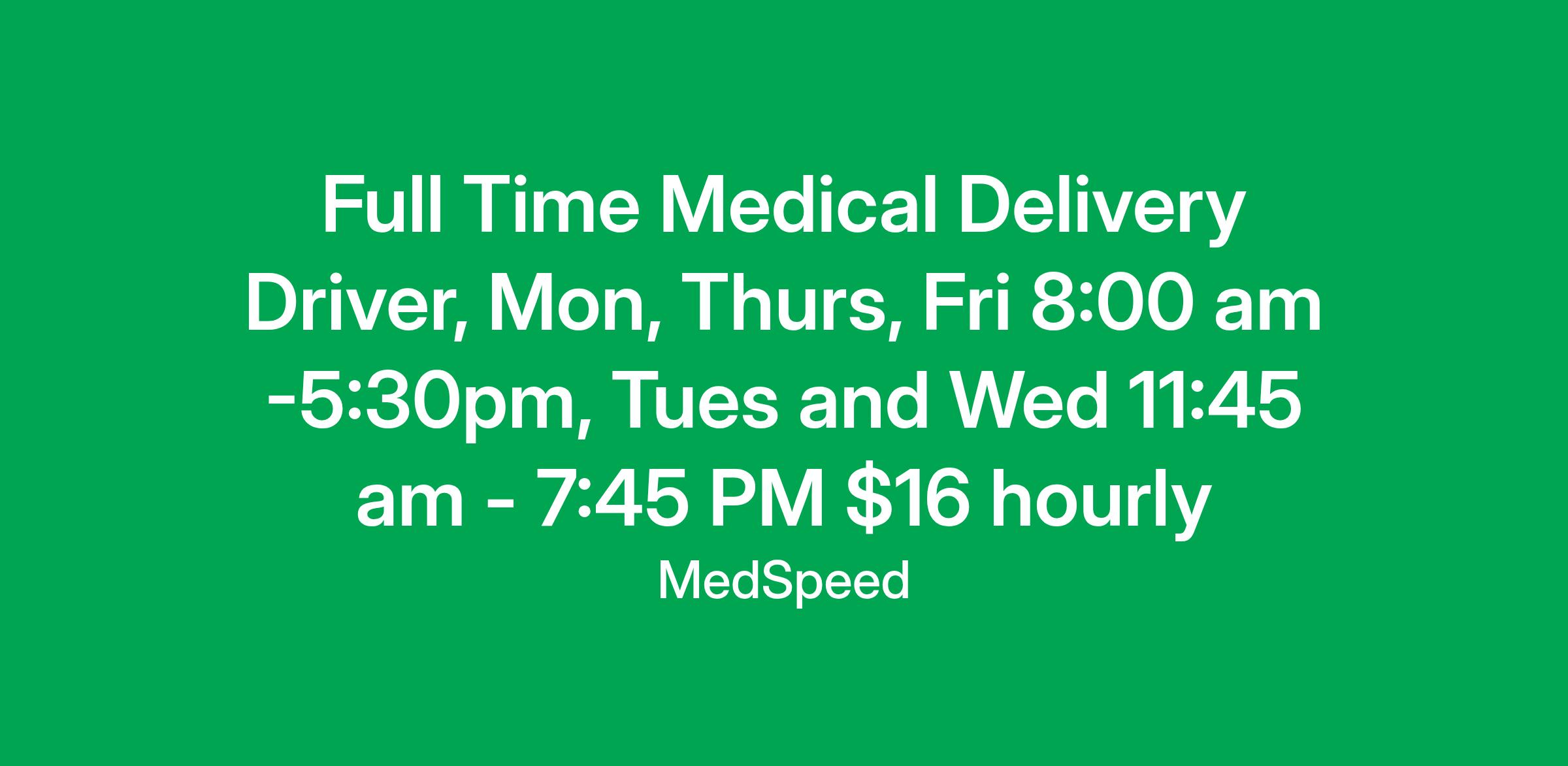 Please beware of fake job offers. MedSpeed only contacts candidates through official channels and never requests personal information outside of our secure application process. All position openings are at www.medspeed.com