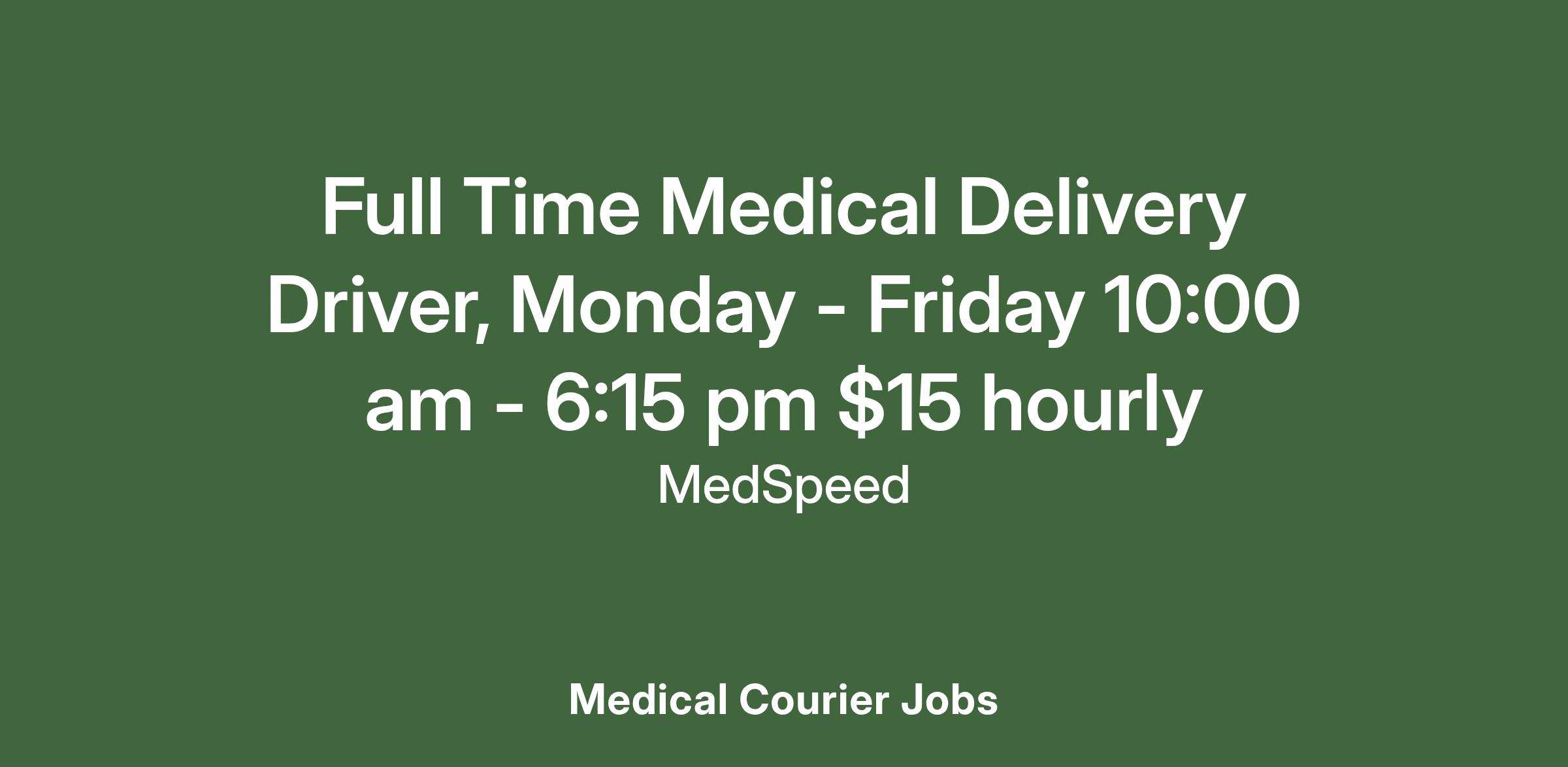 Please beware of fake job offers. MedSpeed only contacts candidates through official channels and never requests personal information outside of our secure application process. All position openings are atwww.medspeed.com