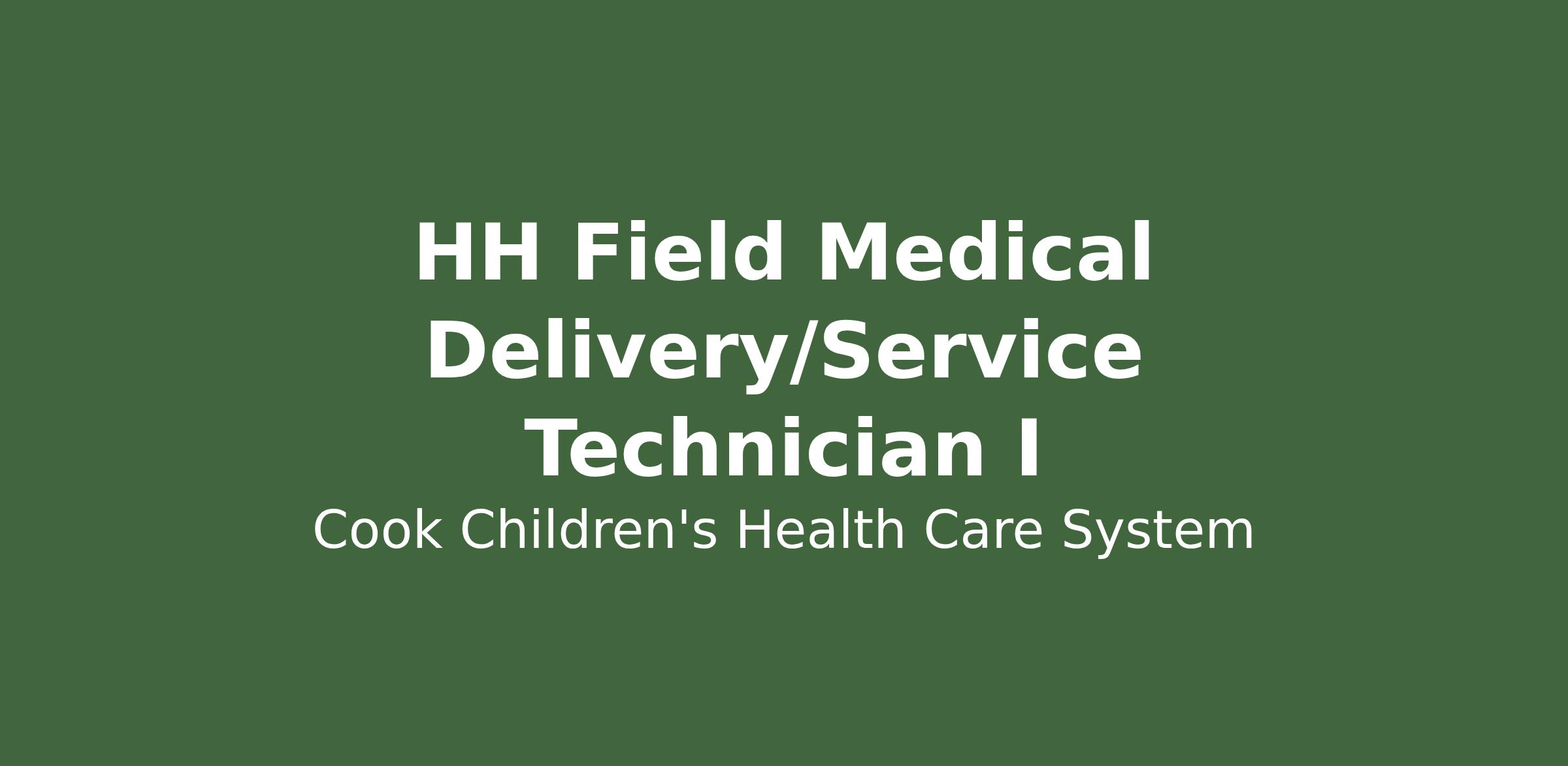 This Field Medical Delivery/Service Technician will deliver supplies and equipment to Cook Children's Home Health customers as assigned and ensure proper set-up and instruction is provided to the patient/caregiver or healthcare provider. The role assists with other warehouse activities such as equipment maintenance, functional checks, and inventory control as directed by the manager.