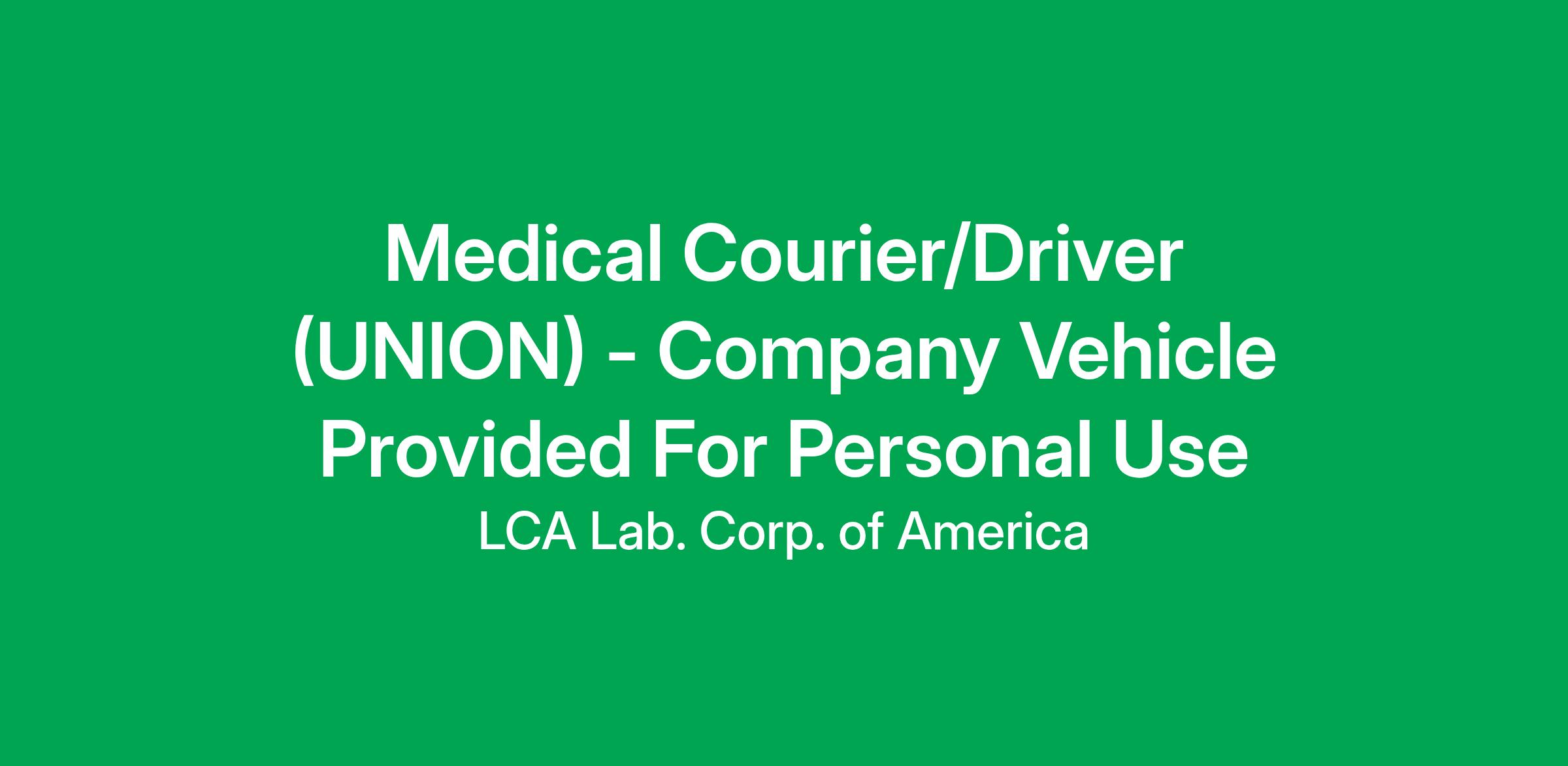 Medical Courier/Driver (UNION) - Company Vehicle Provided For Personal Use