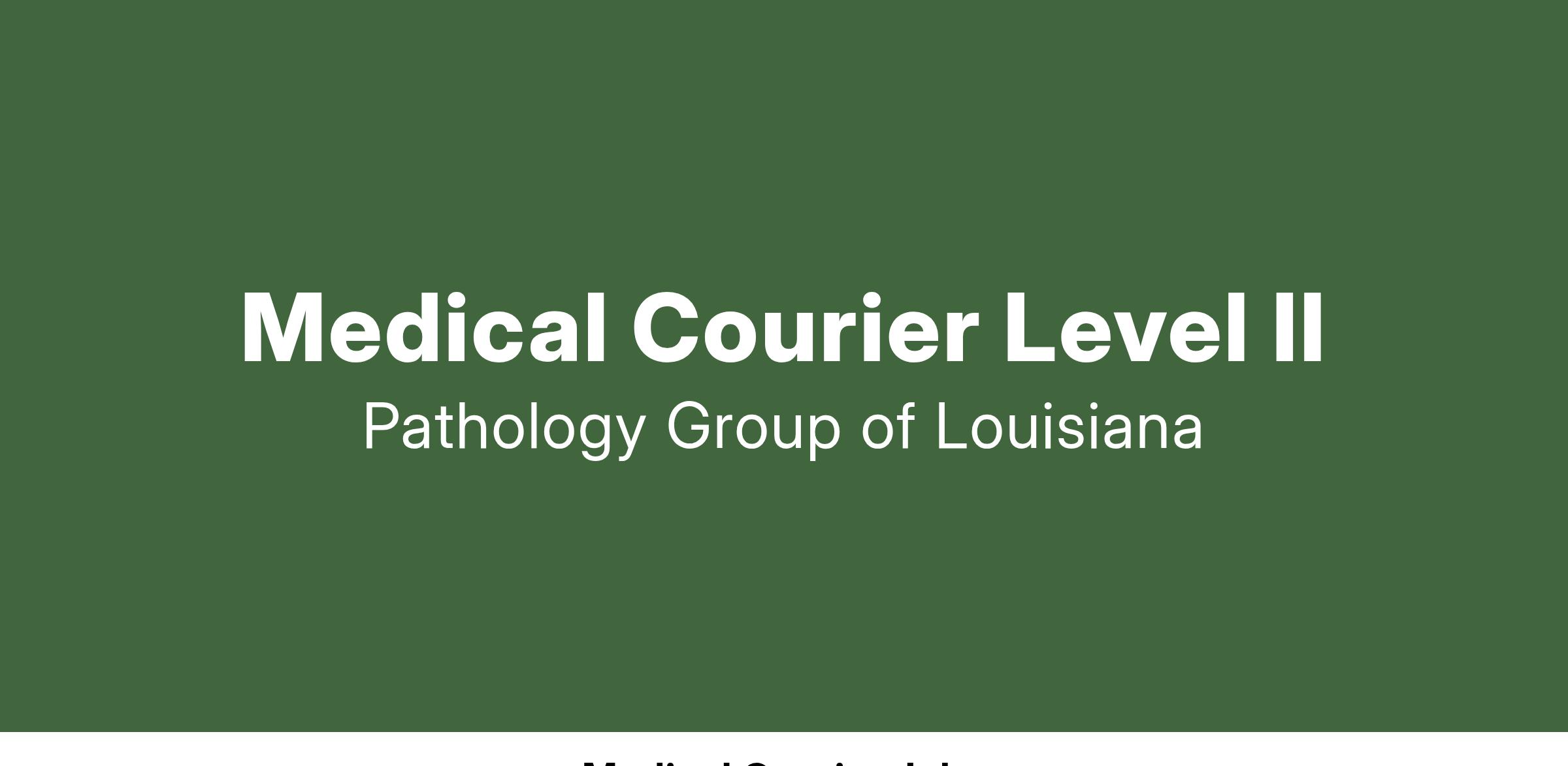 Under direct supervision, provides pick-up and delivery service for various customers. Maintains required logs and electronic records, and performs various routine delivery functions as specifically instructed. Expected to be customer-service oriented, pleasant, and courteous to everyone, especially when on client premises. Expected to perform all job duties of Courier Level I in addition to a higher volume of specimens with more complex route.