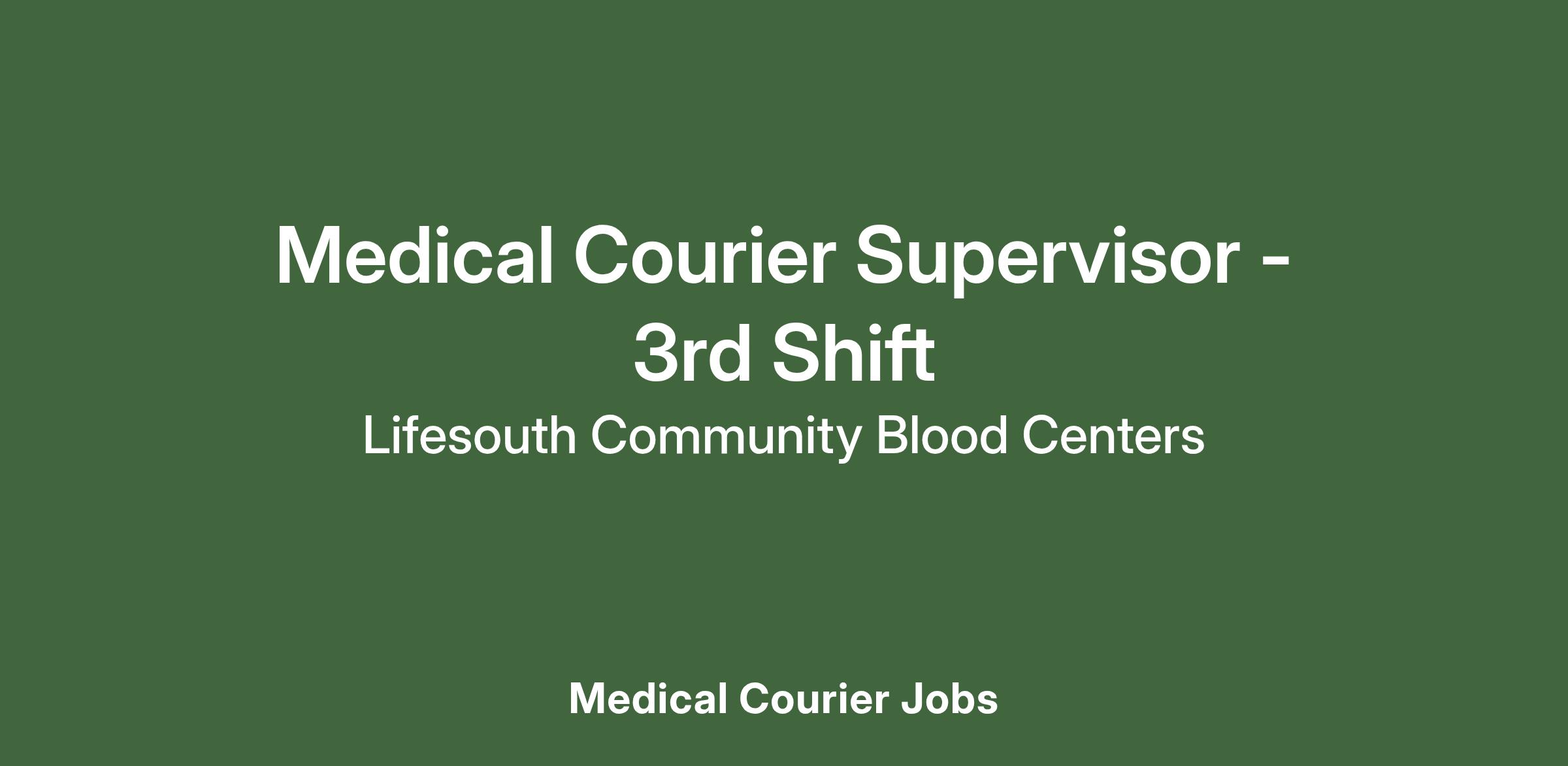 LifeSouth Community Blood Centers is looking for an individual to join our team as a Medical Courier Supervisor in Dunwoody, GA. This position is responsible for issues relating to the shipment, delivery and storage of blood, blood components and cord blood in compliance with organizational policies and procedures and performing daily supervisory responsibilities.