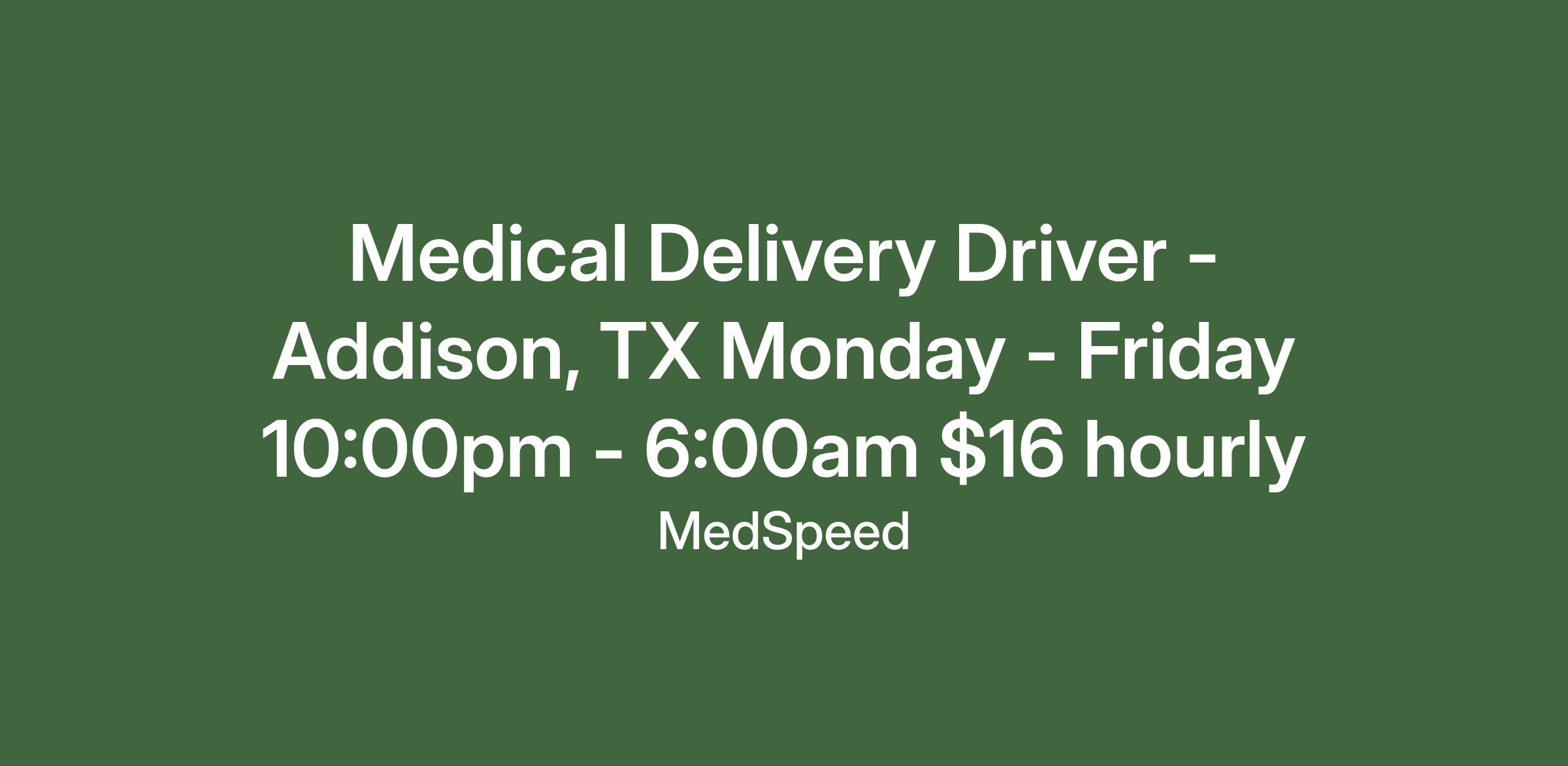 Please beware of fake job offers. MedSpeed only contacts candidates through official channels and never requests personal information outside of our secure application process. All position openings are at www.medspeed.com