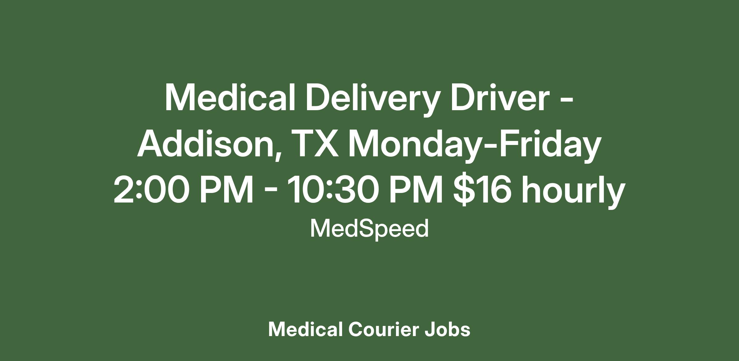 Join MedSpeed to help us deliver health! MedSpeed is a healthcare logistics company that partners with healthcare organizations throughout your communities to transport various medical supplies, specimens, and materials.At Medspeed we work as a team, keep our promises and strive to improve daily. We are looking for individuals who believe in and represent those values.