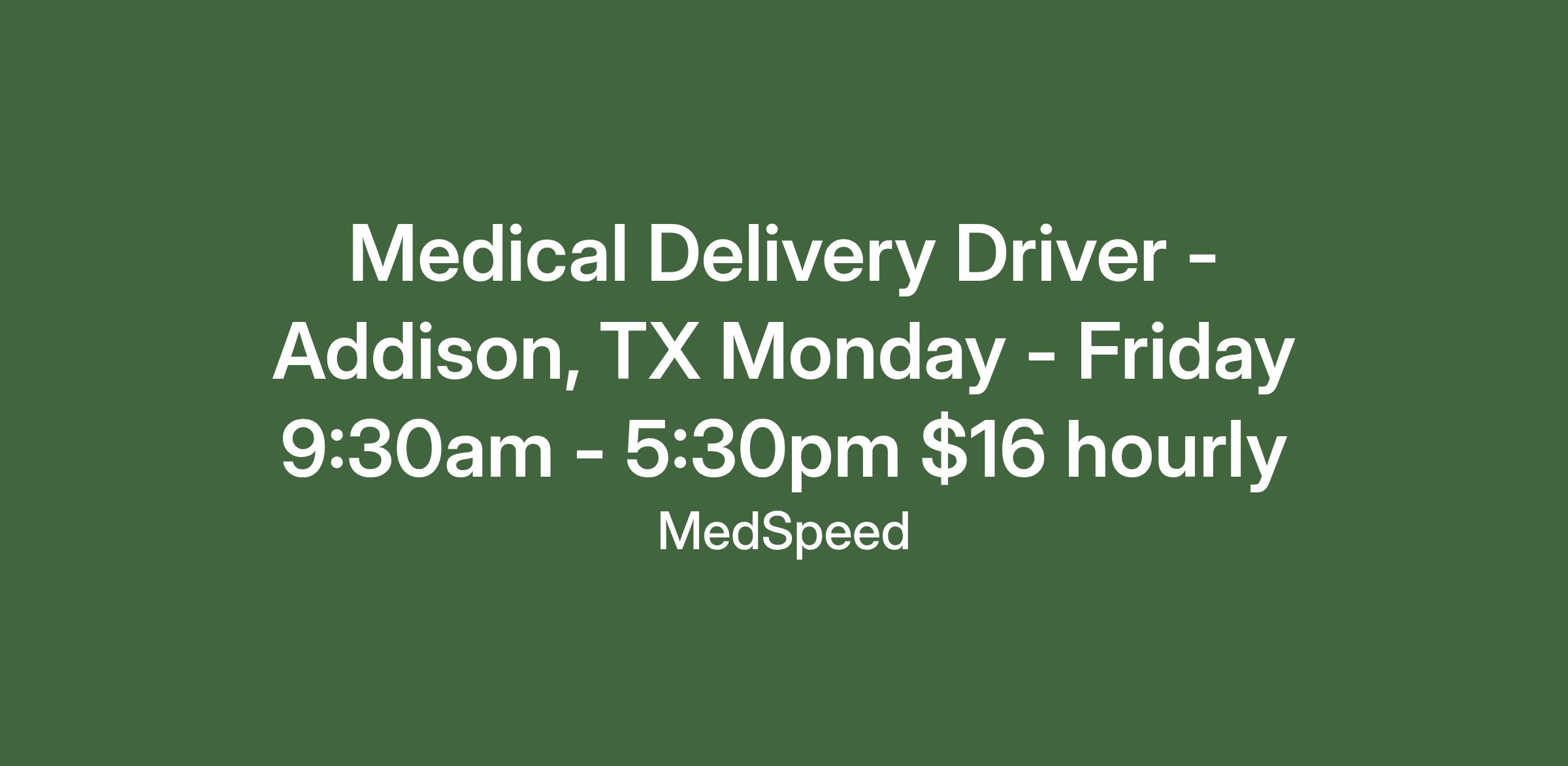 Please beware of fake job offers. MedSpeed only contacts candidates through official channels and never requests personal information outside of our secure application process. All position openings are at www.medspeed.com