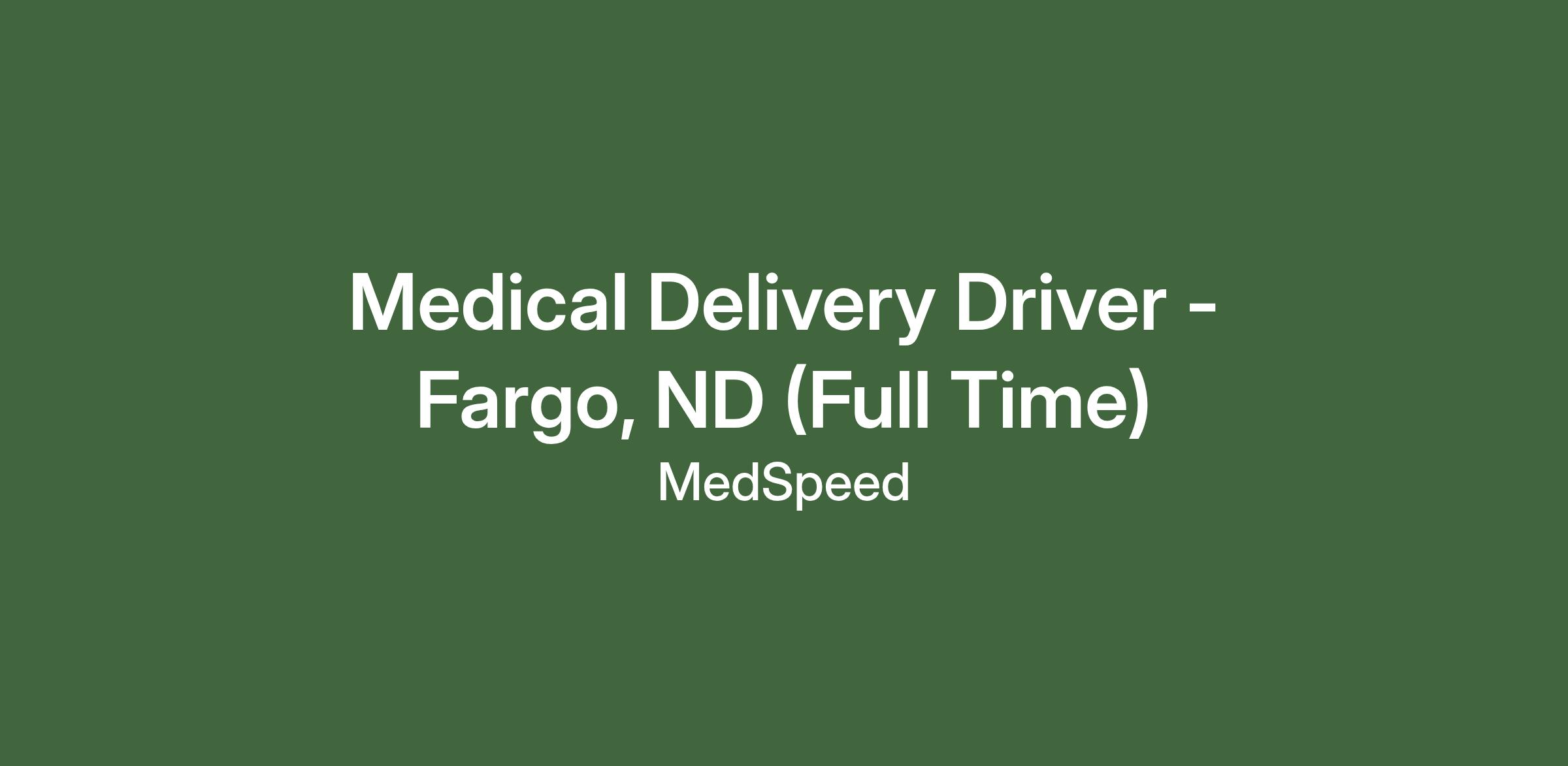 Medical Delivery Driver - Fargo, ND - $17.00 - Full-Time