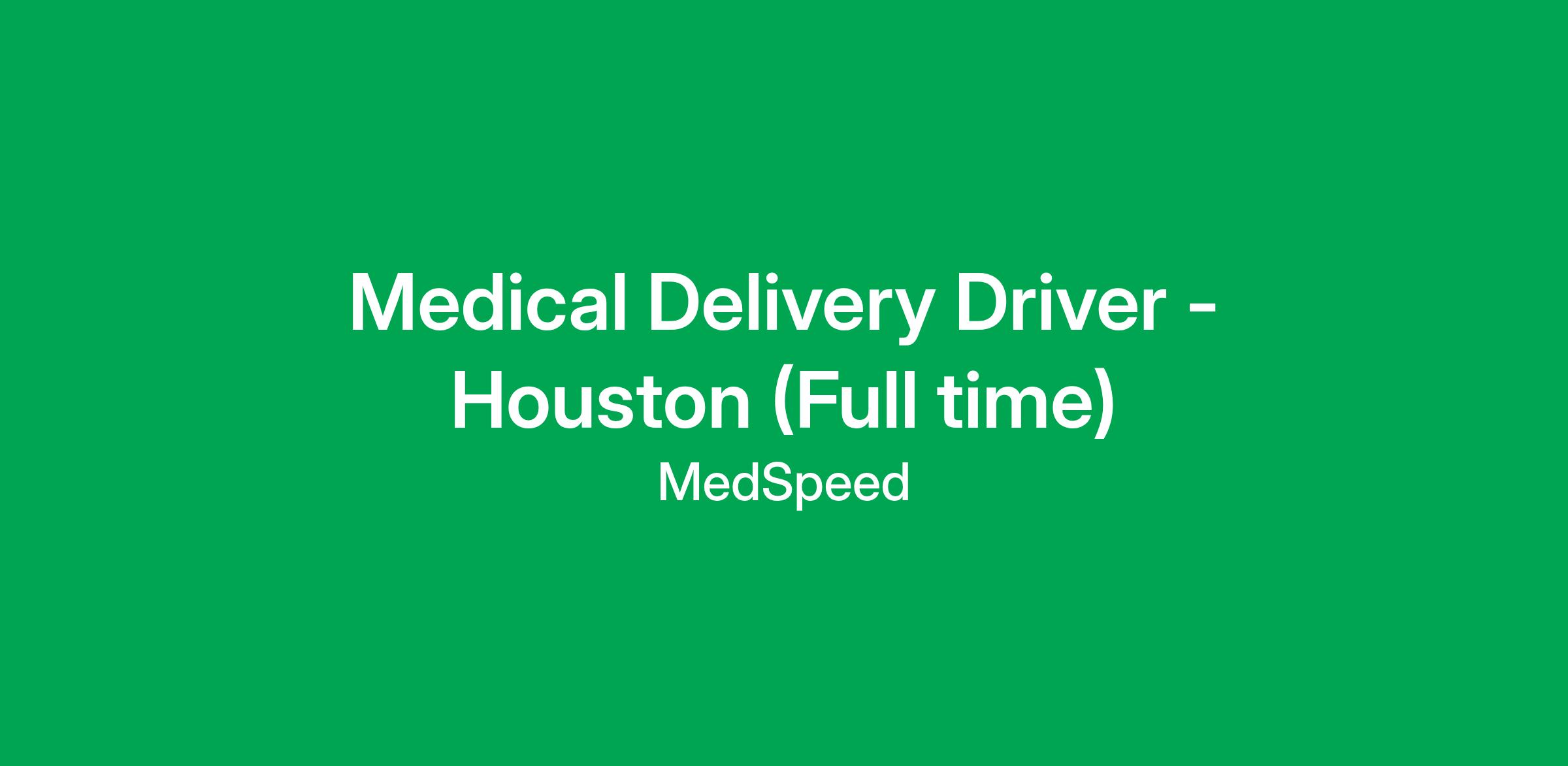*Please note you will start and end your day from our MedSpeed hub in the Westchase area of Houston daily