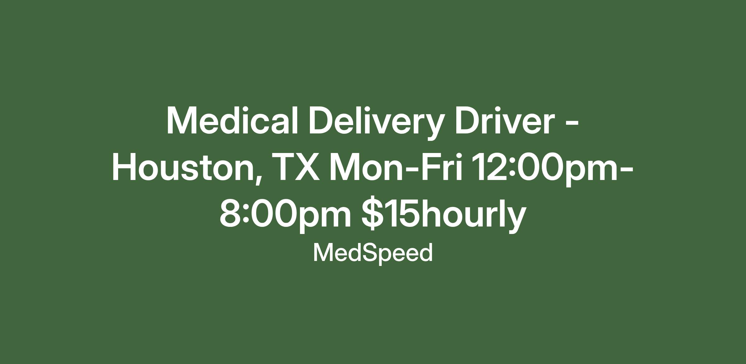 Medical Driver - Houston,TX $15.00/hr - Full-Time