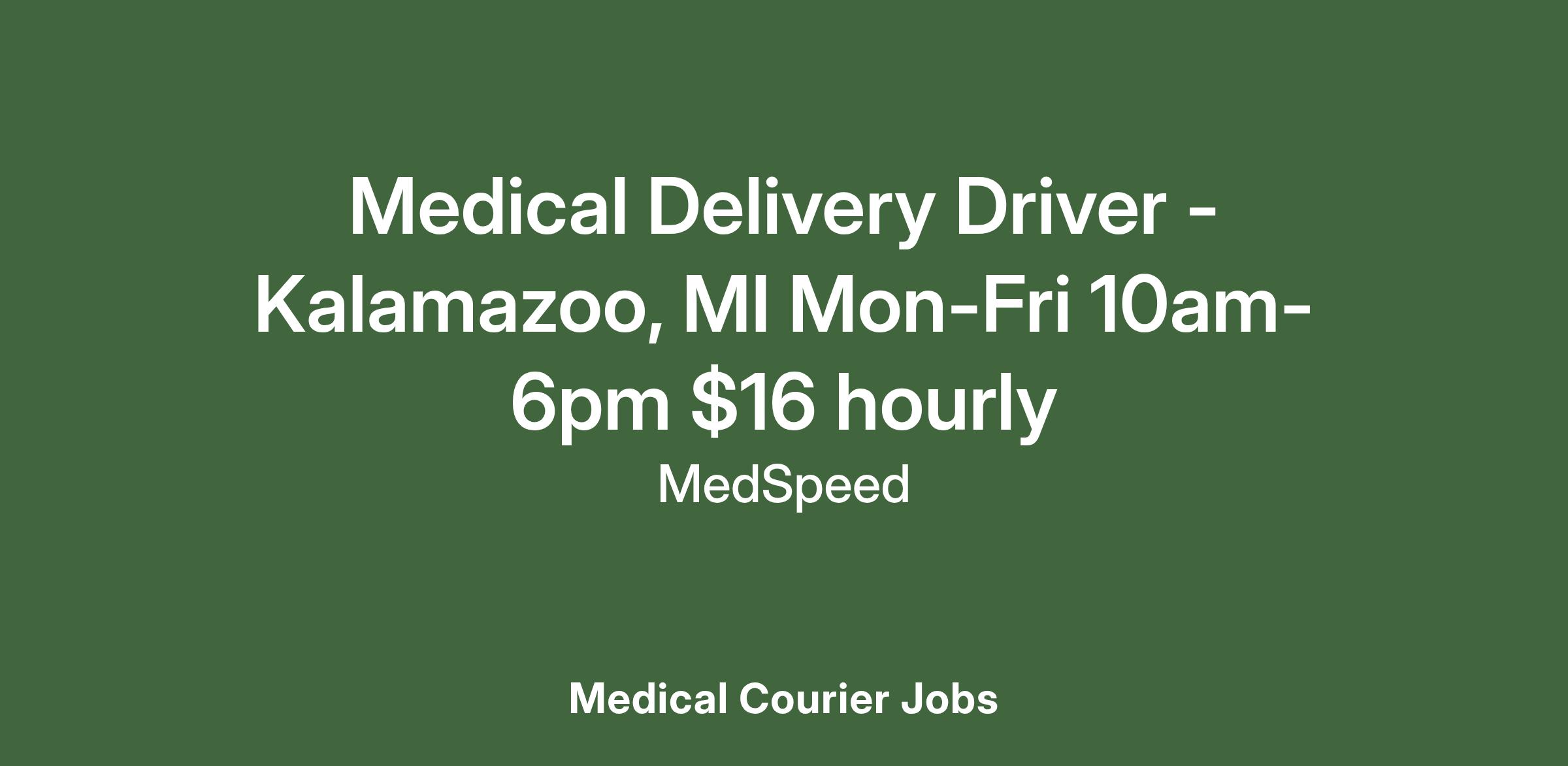 What you will be doing as a MedSpeed Medical Driver: - Most of your day will be spent in a company-owned vehicle, safely driving and transporting lab specimens, medical records, pharmaceuticals, x-rays, hospital supplies, interoffice mail and related materials