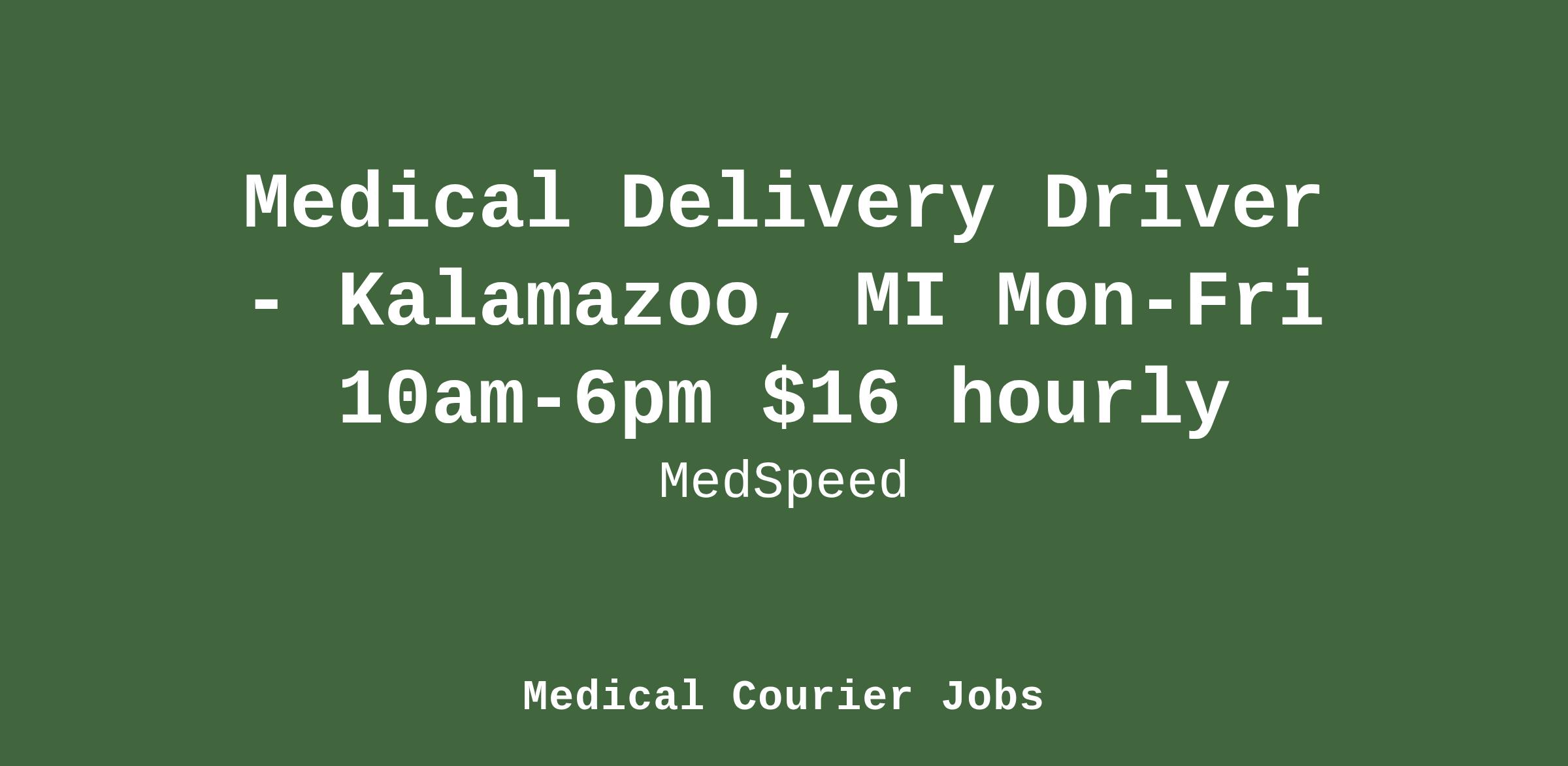 What you will be doing as a MedSpeed Medical Driver: - Most of your day will be spent in a company-owned vehicle, safely driving and transporting lab specimens, medical records, pharmaceuticals, x-rays, hospital supplies, interoffice mail and related materials
