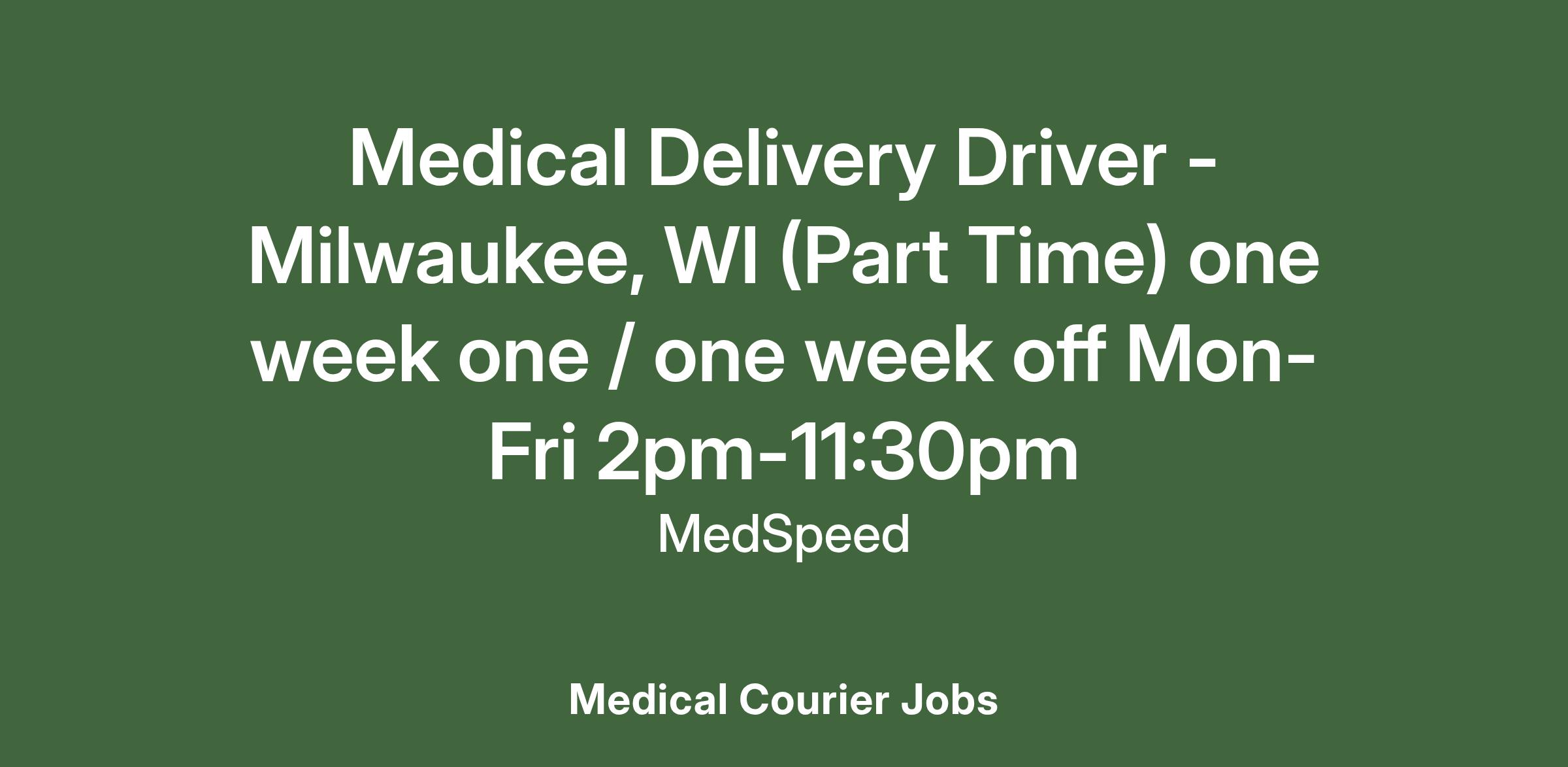 What you will be doing as a MedSpeed Medical Driver: - Most of your day will be spent in a company-owned vehicle, safely driving and transporting lab specimens, medical records, pharmaceuticals, x-rays, hospital supplies, interoffice mail and related materials