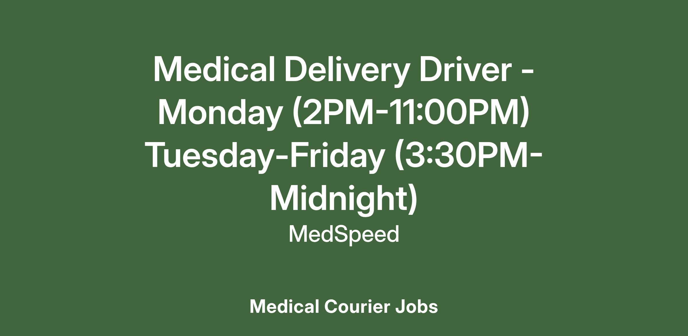 Please beware of fake job offers. MedSpeed only contacts candidates through official channels and never requests personal information outside of our secure application process. All position openings are at www.medspeed.com