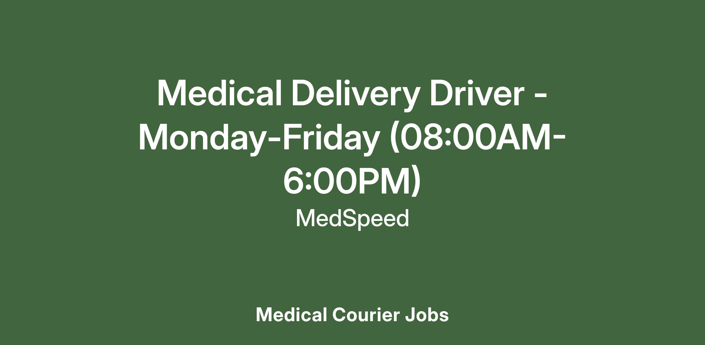 What you will be doing as a MedSpeed Medical Driver: - Most of your day will be spent in a company-owned vehicle, safely driving and transporting lab specimens, medical records, pharmaceuticals, x-rays, hospital supplies, interoffice mail and related materials
