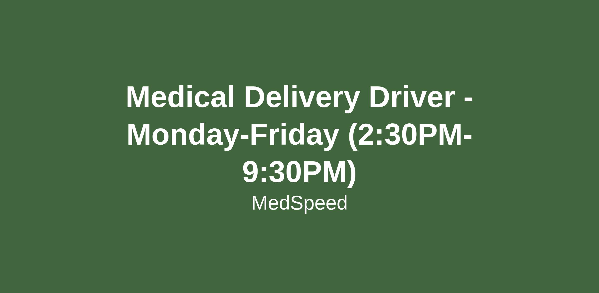 Please beware of fake job offers. MedSpeed only contacts candidates through official channels and never requests personal information outside of our secure application process. All position openings are at www.medspeed.com