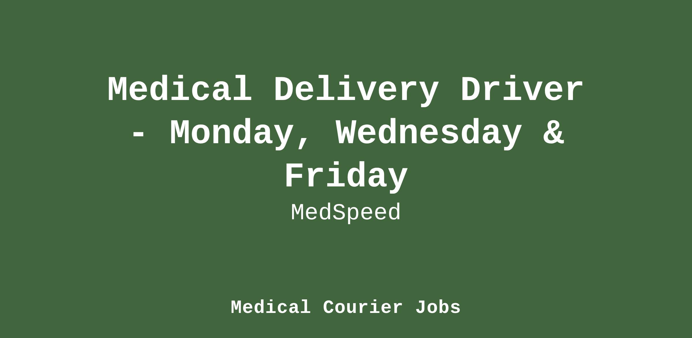 Please beware of fake job offers. MedSpeed only contacts candidates through official channels and never requests personal information outside of our secure application process. All position openings are at www.medspeed.com