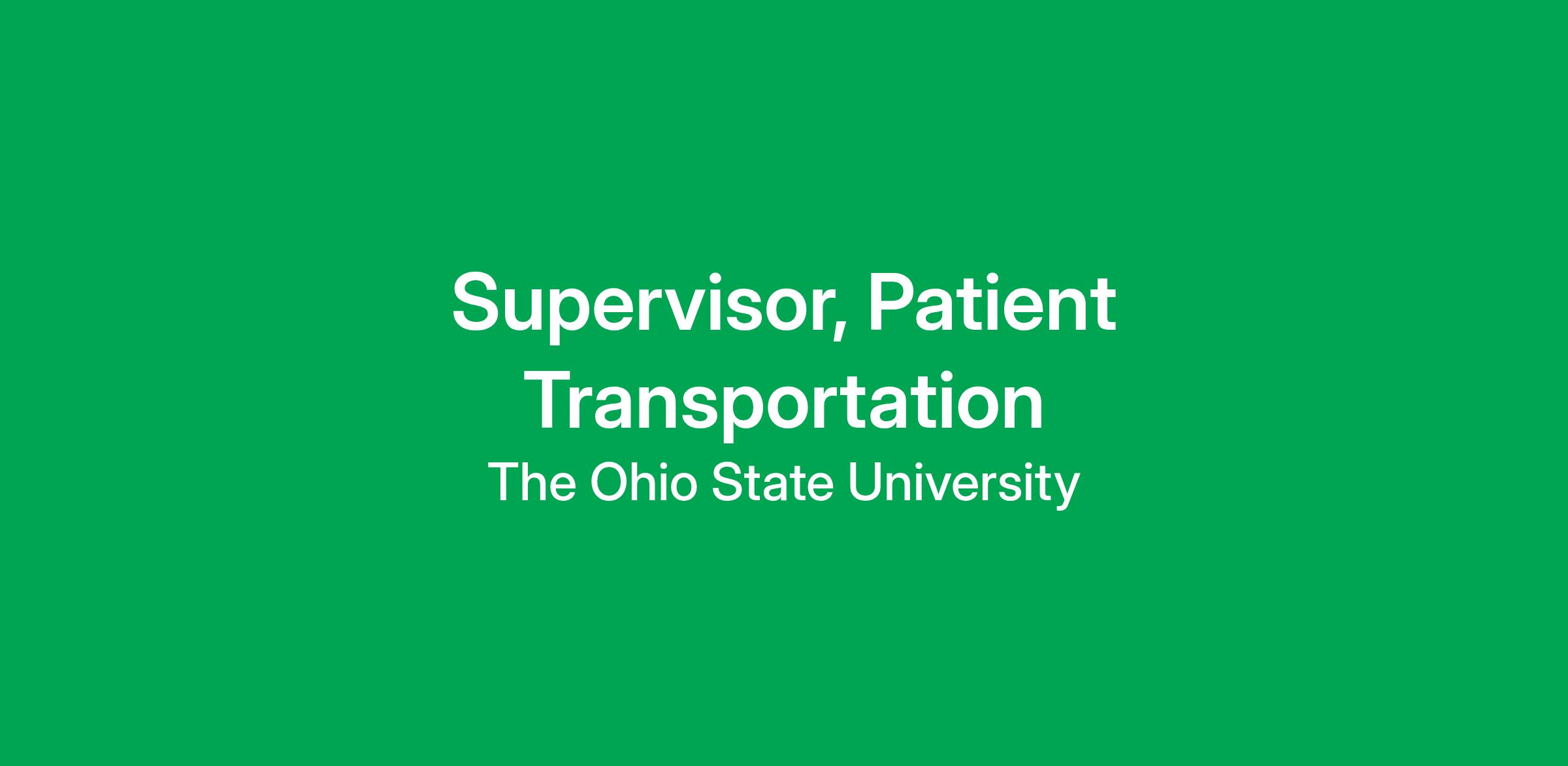 The Ohio State University Medical Center?s mission is focused on integrating quality patient care, education, and research; the Patient Transportation Supervisor leads a team through cultivating, collaboration, enthusiasm, and mutual respect; functions as a key member of the health care team that provides transportation and supportive services in an in-patient setting directed towards achievement of positive patient care outcomes, improving service levels, and decreasing costs; ensures patients and their families will experience the benefits of patient-focused care while navigating through our health system.