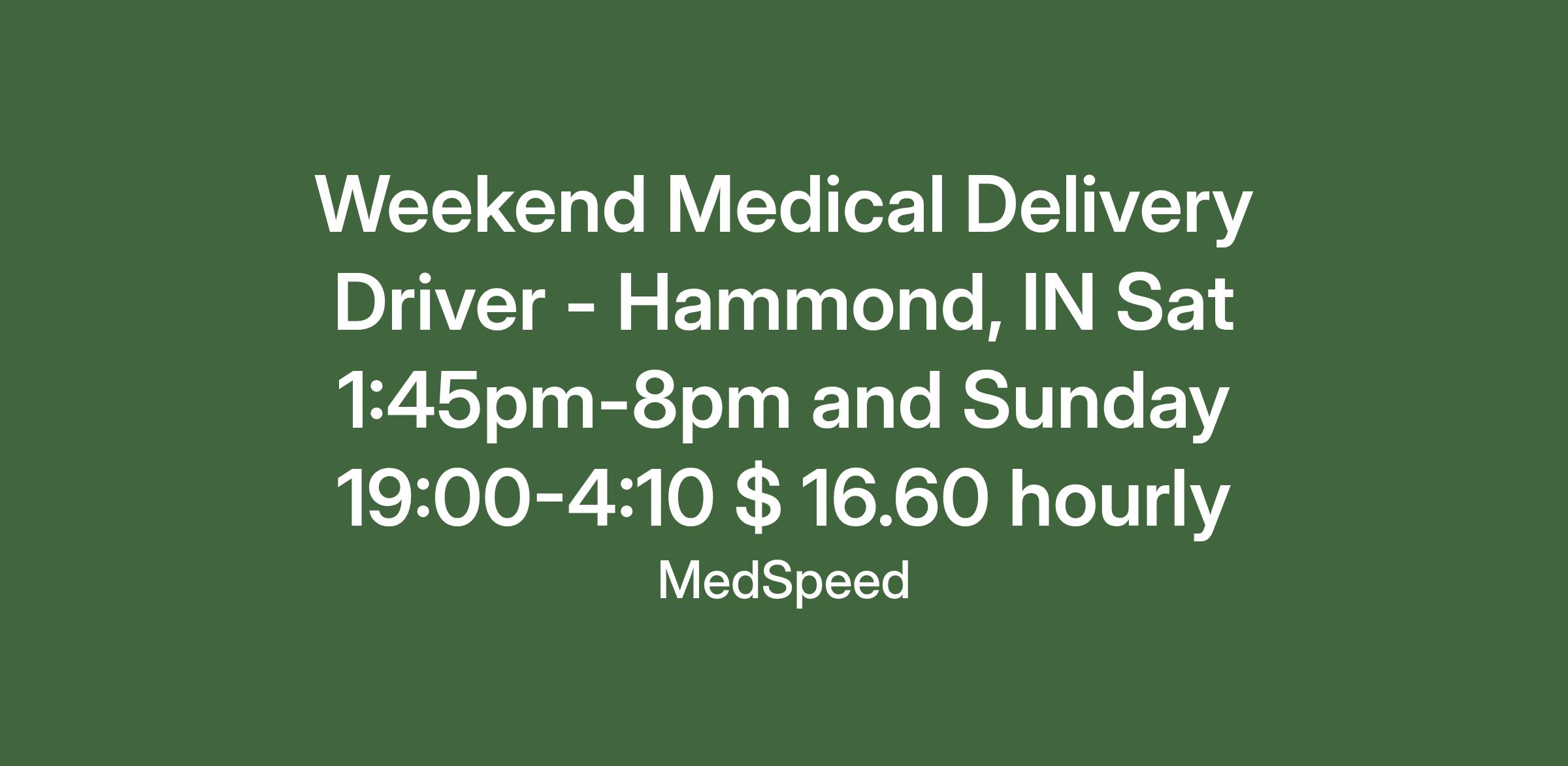 Part Time Medical Driver – Hammond - $16.60/hr + $1/hr shift differential