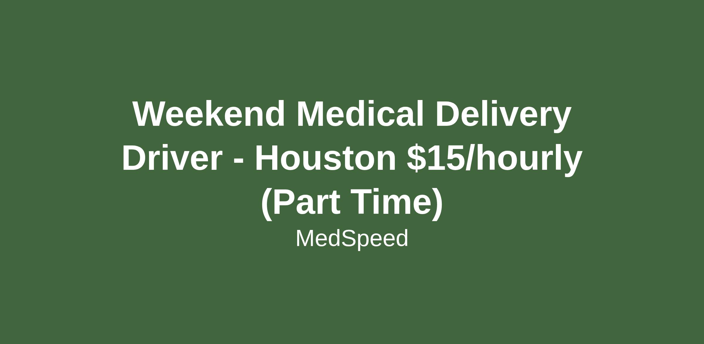 *Please note, you will be starting and ending your day at our MedSpeed Hub in the Westchase area of Houston*