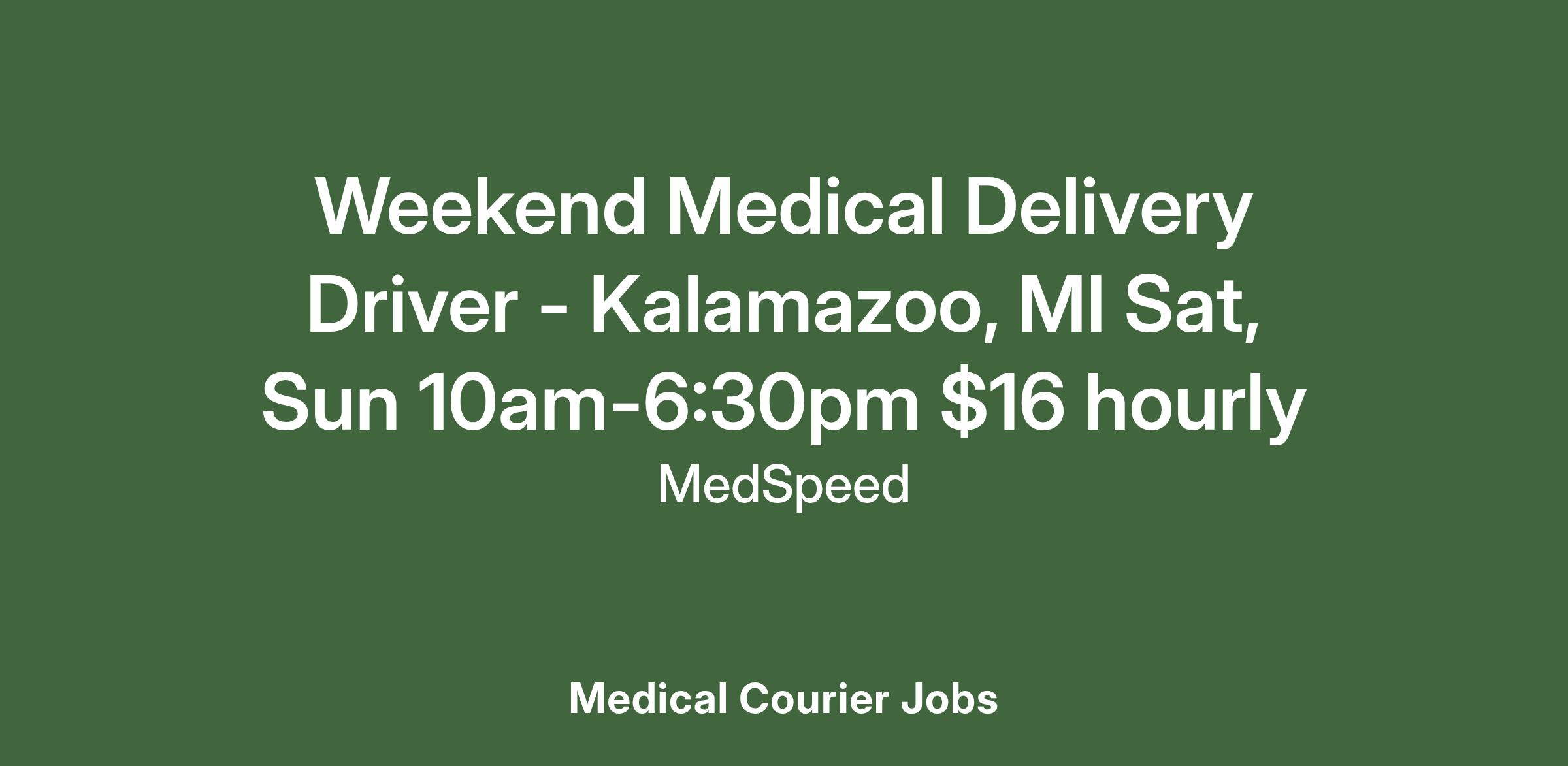 What you will be doing as a MedSpeed Medical Driver: - Most of your day will be spent in a company-owned vehicle, safely driving and transporting lab specimens, medical records, pharmaceuticals, x-rays, hospital supplies, interoffice mail and related materials